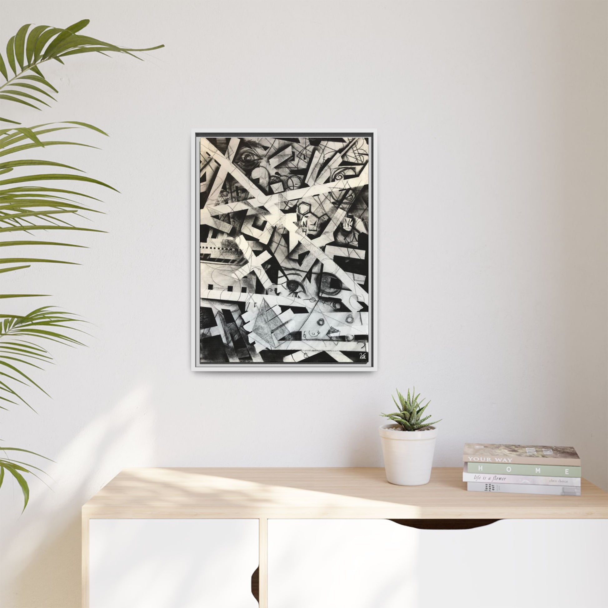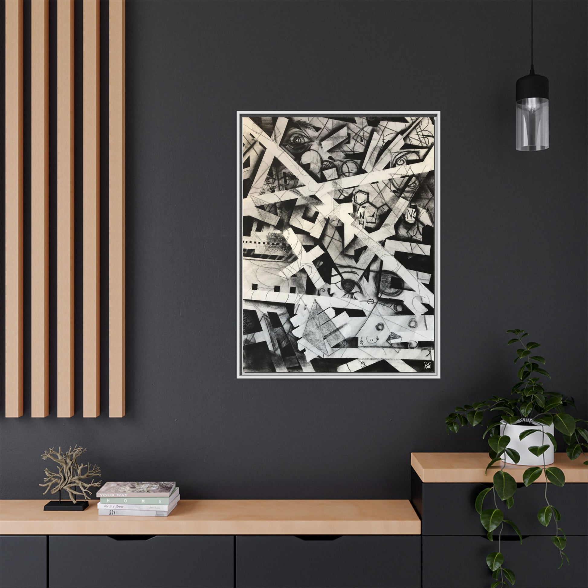 Framed print on 100% cotton fabric canvas. The original was made with charcoal on paper.